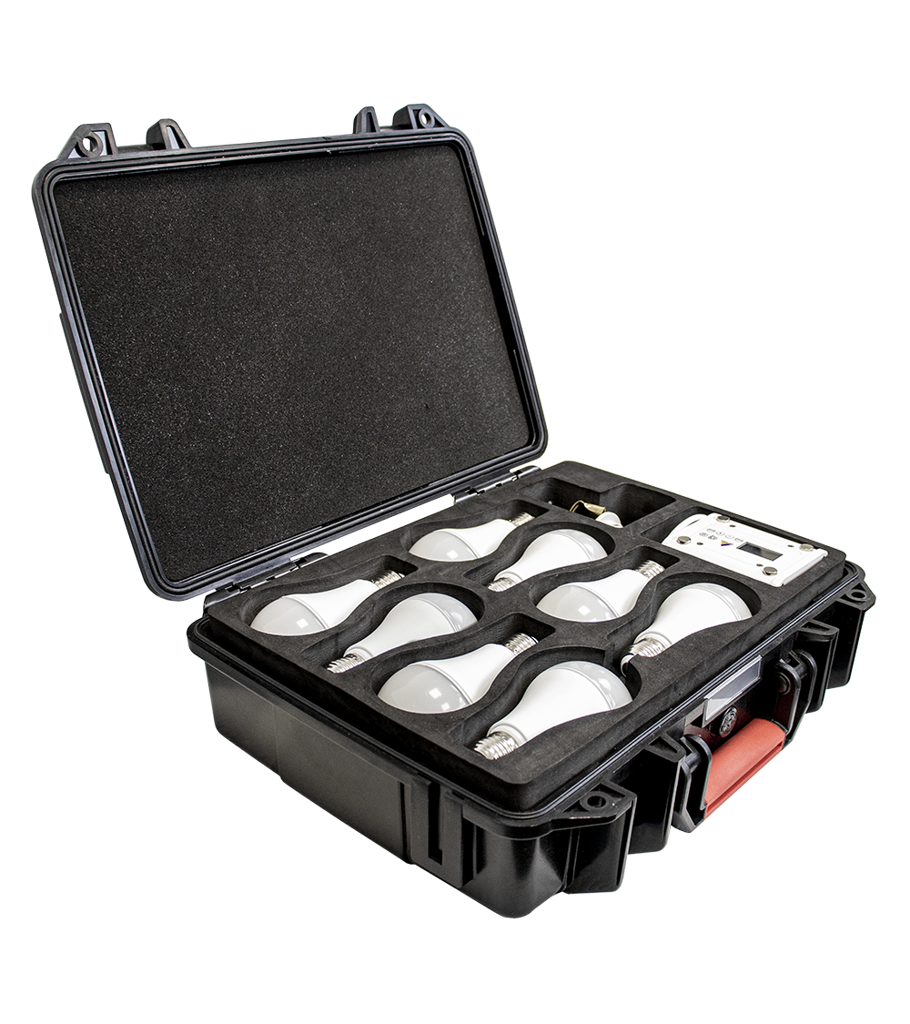 Výhodná sada 8 kusov žiaroviek NYX a jednej PowerStation v odolnom prepravnom boxe. Táto sada umožňuje nielen LED žiarovky bezpečne prevážať a prenášať, ale vďaka PowerStation a ďalšiemu príslušenstvo môžete žiarovky programovať priamo v prepravnom puzdre. Pripojením sady ôsmich PowerStation (FP5-PS-SET) premosťovacím prepojovacími káblami k LED žiarovkám získate možnosť žiarovky napájať a programovať všetky naraz.