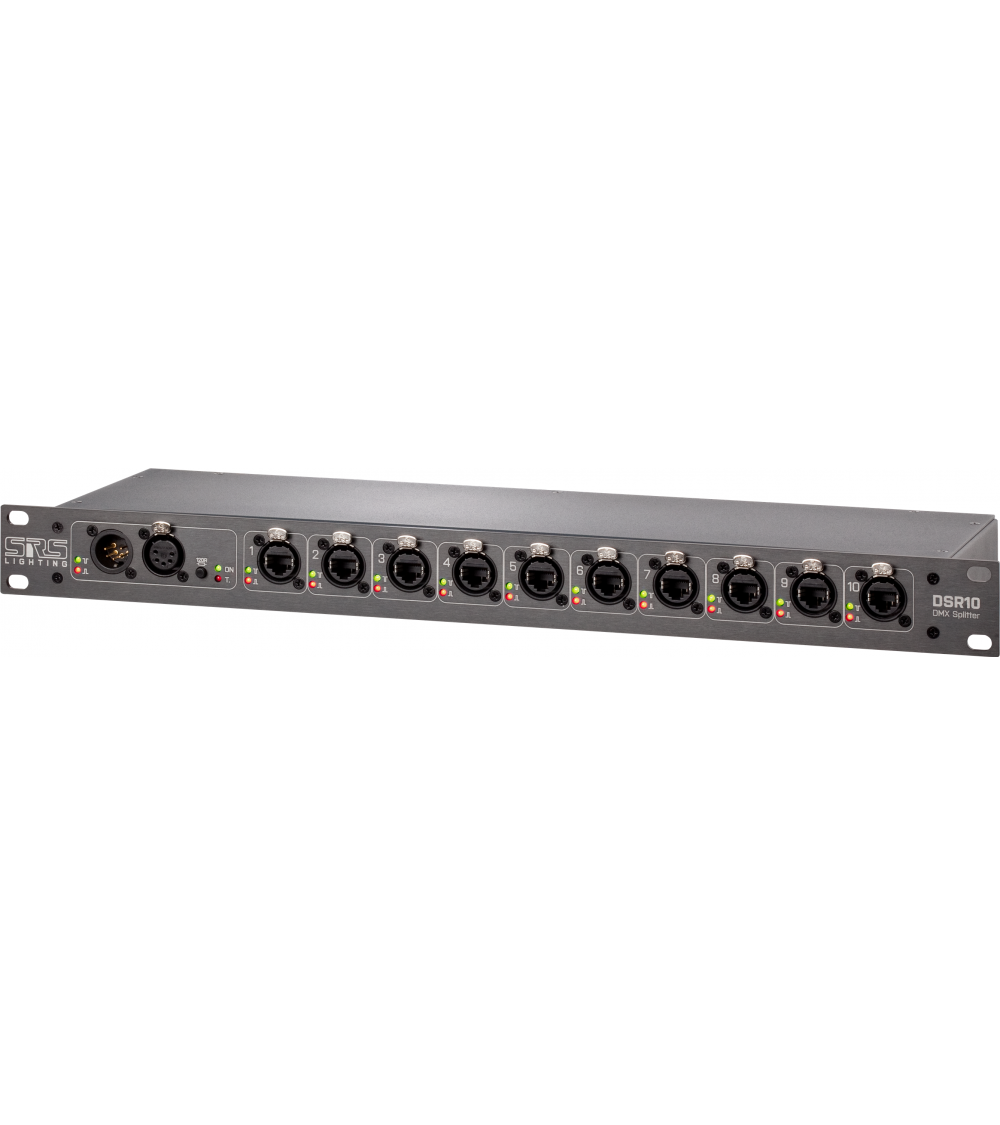 DSR10N je 19'' 10-kanálový rozdeľovač/posilňovač signálu DMX s montážou do racku 1U. Každý výstup je vybavený LED indikáciou stavu DMX a je opticky izolovaný až do 1000 V. Zariadenie poskytuje aj skutočný výstup na jednoduché reťazové zapojenie ďalších zariadení DMX.