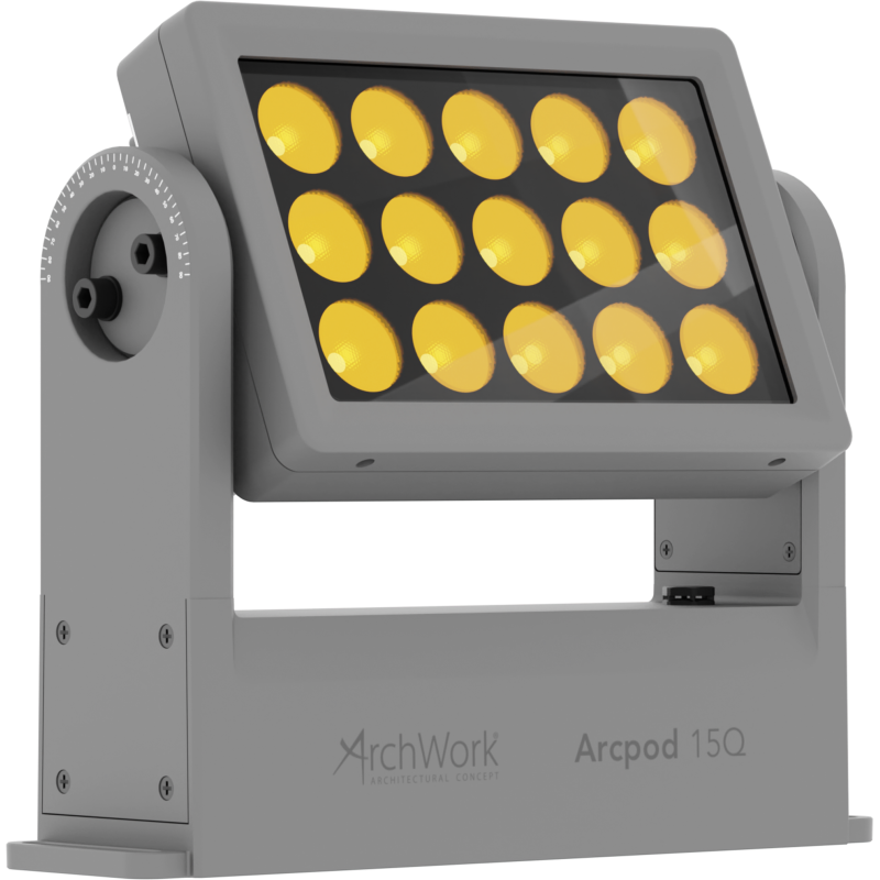 ArcPod 15Q je kompaktné wash svetlo do exteriéru, ktoré sa napriek svojej malej veľkosti vyznačuje vysokou intenzitou svetla. Jednotka je vybavená 15x10W RGBW / FC LED diódami, ktoré poskytujú výnimočný výkon nad 5'900 lúmenov a široký rozsah farieb a bielej. Tenké rozmery, ako aj široká škála dostupnej optiky robí z ArcPod 15Q neuveriteľne flexibilné architektonické zariadenie, ktoré dopĺňa väčšie verzie vo veľkých vonkajších inštaláciách ako akcentačné svetlo alebo pre menšie projekty.