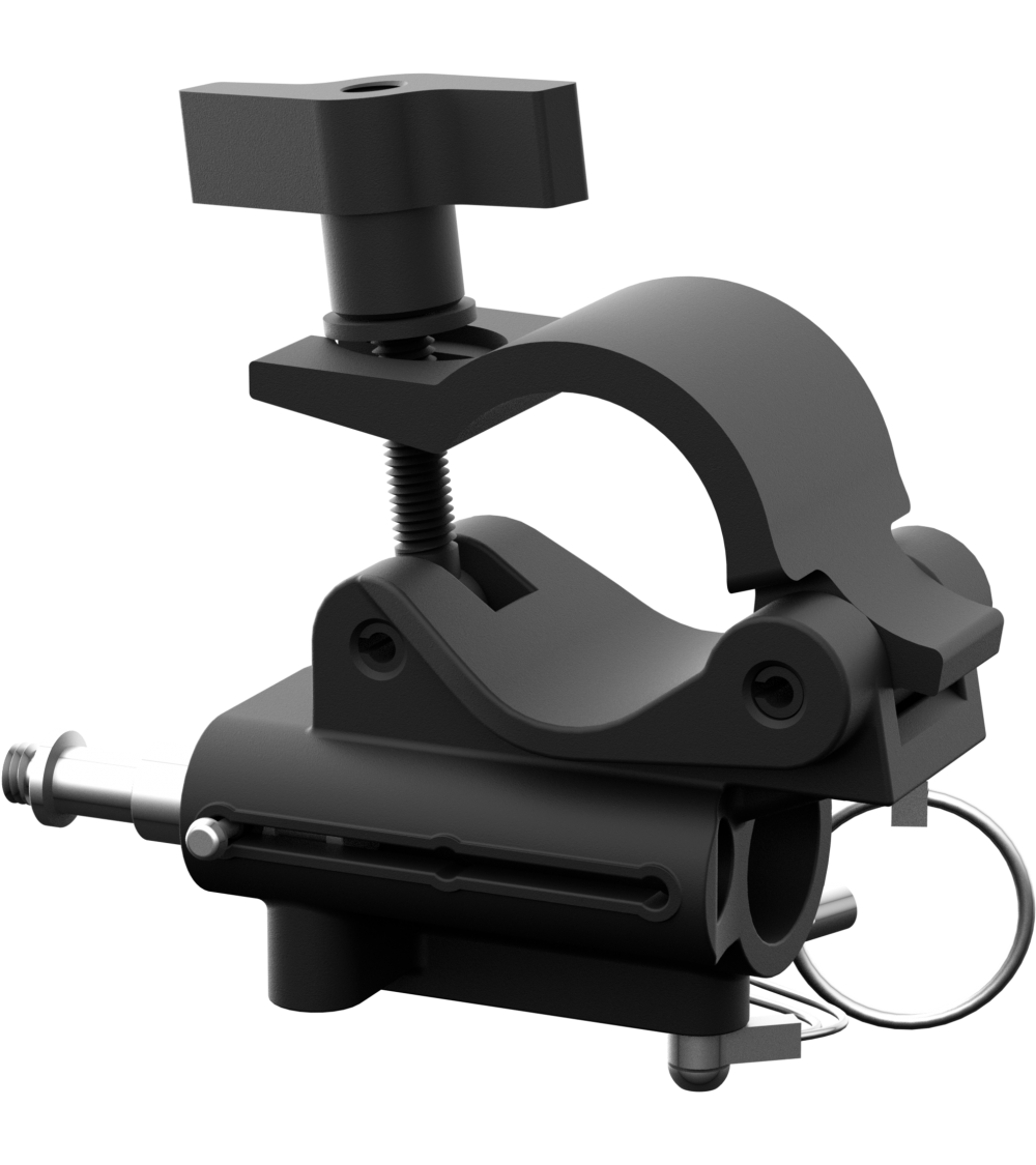 Aluminum clamp for 28mm spigot + 16mm pin, 200kg load, 48-51mm tubes, black