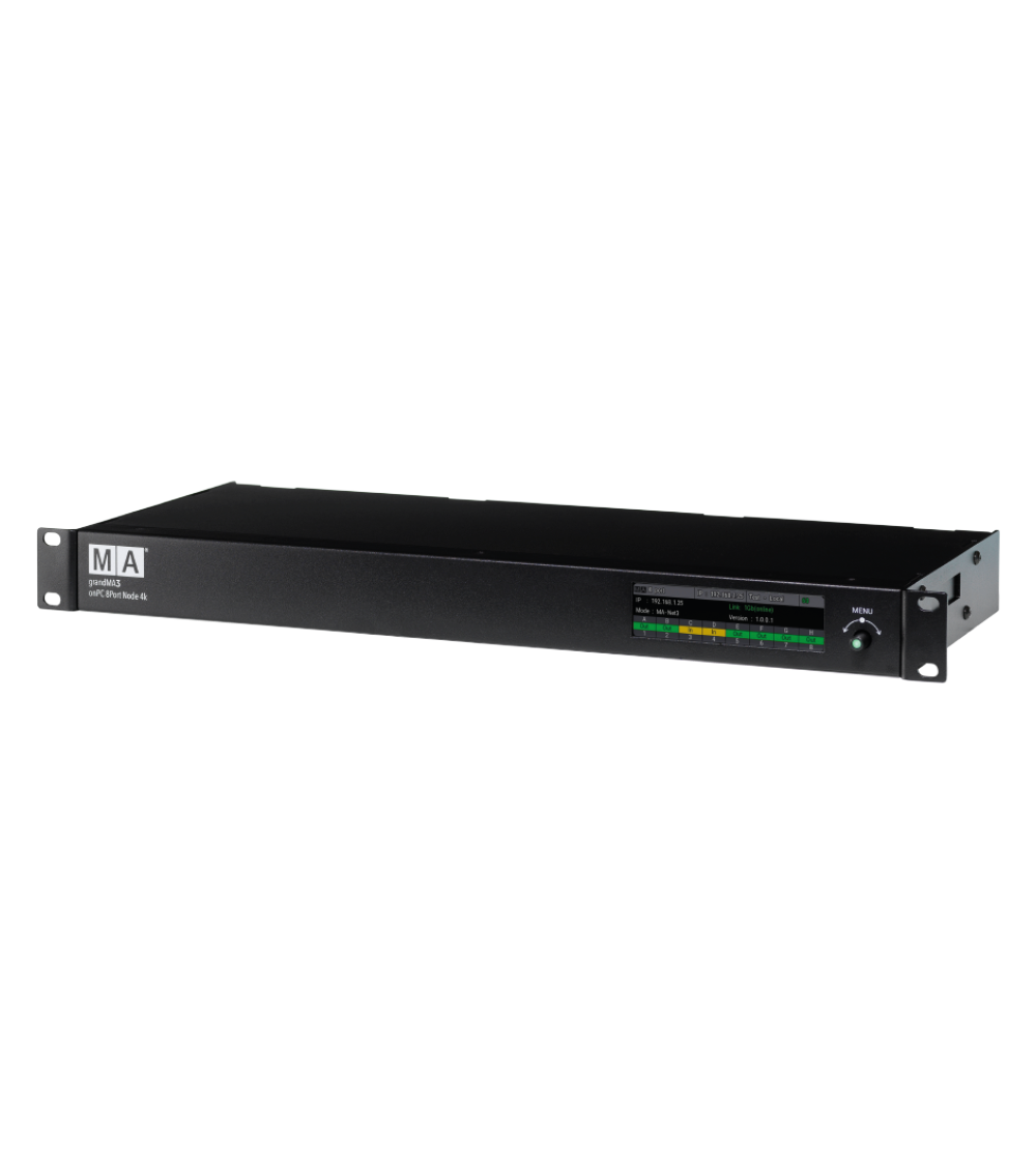 Uzol grandMA3 onPC 8Port Node 4k PoE vám ponúka osem výstupov DMX na zadnom paneli. Je zabalený v 19"/1RU skrini - takže sa dokonale zmestí do vášho turistického alebo inštalačného stojana. Uzol priamo umožňuje 4 096 parametrov - maximum pre váš systém grandMA3 onPC!