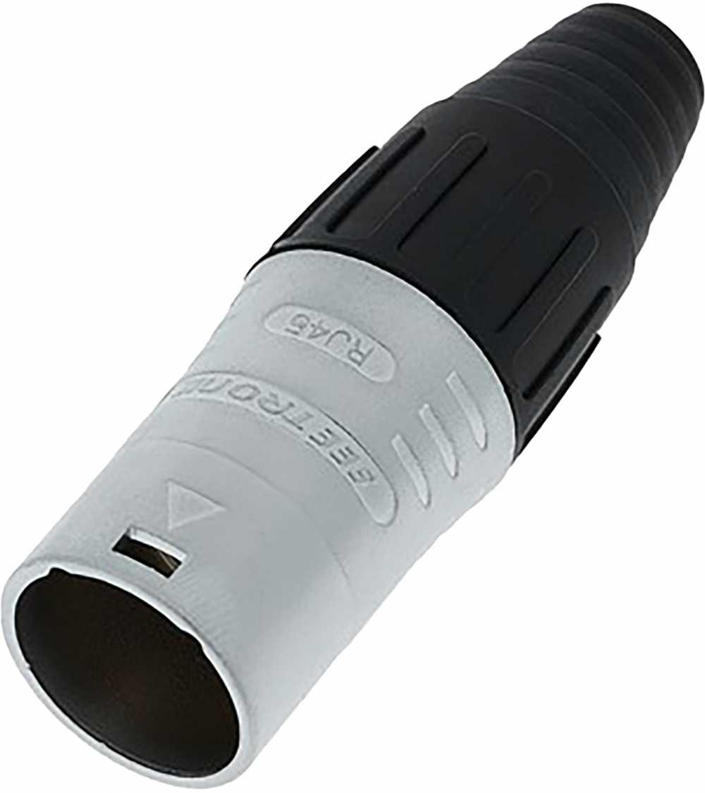 RJ45 data connector in metal, black sleeve