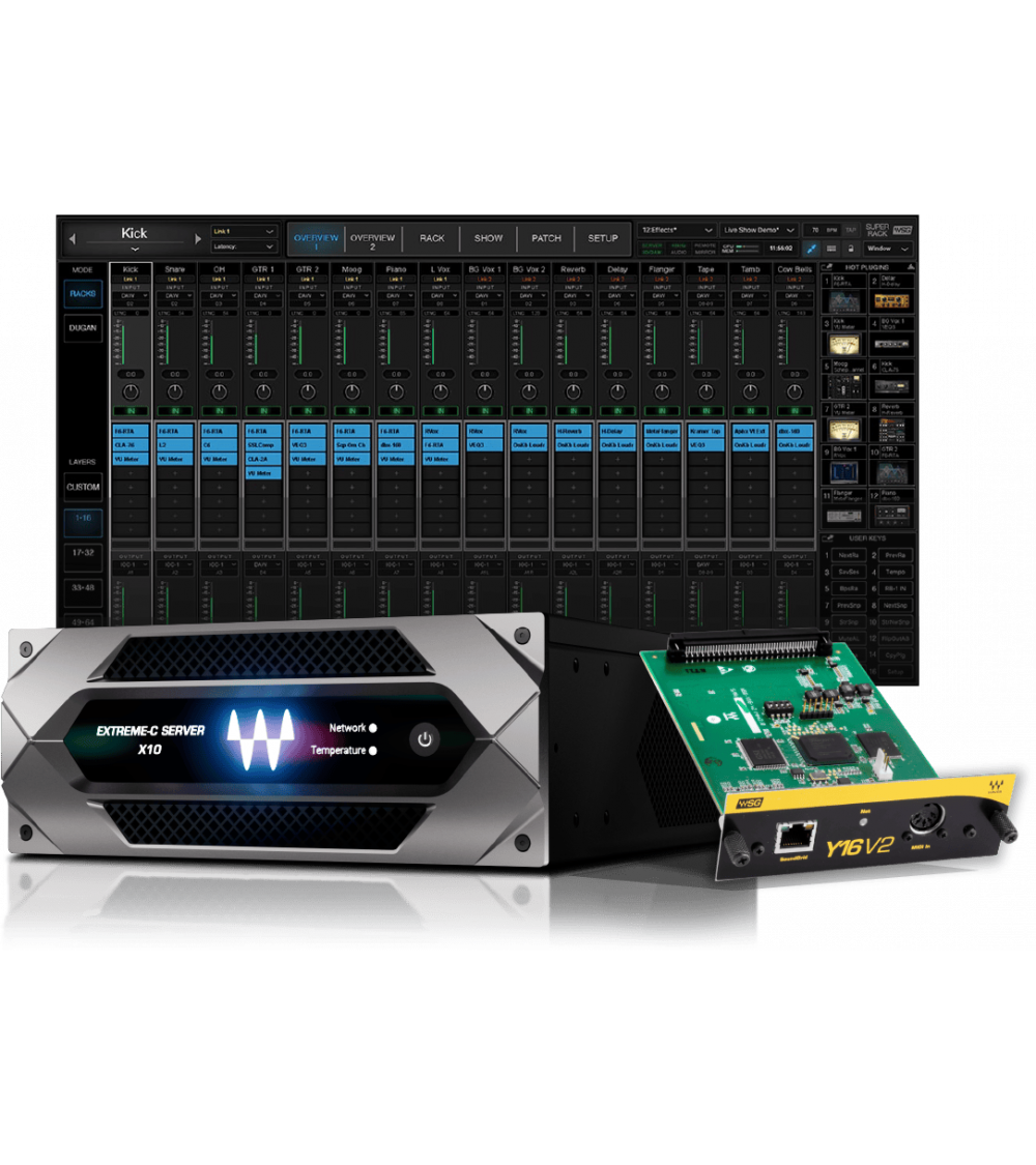 Súčasťou balíka je aj aplikácia Waves SuperRack SoundGrid, ktorá umožňuje spúšťať až 8 Waves pluginov na jeden kanál priamo počas live mixu. Pre spoľahlivú konektivitu je v balení Waves-certifikovaný 8-portový sieťový switch a tri Cat 6 káble.