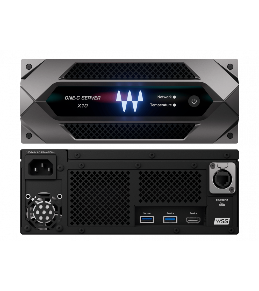 Najnovšia generácia Waves SoundGrid serverov prináša nový elegantný industriálny dizajn navrhnutý pre štýl aj odolnosť. Robustné celokovové 2U šasi One-C má len polovičnú šírku oproti štandardnému 19” racku – môžeš namontovať jeden server pomocou rackových úchytov alebo dva servery vedľa seba pomocou rackovej police.