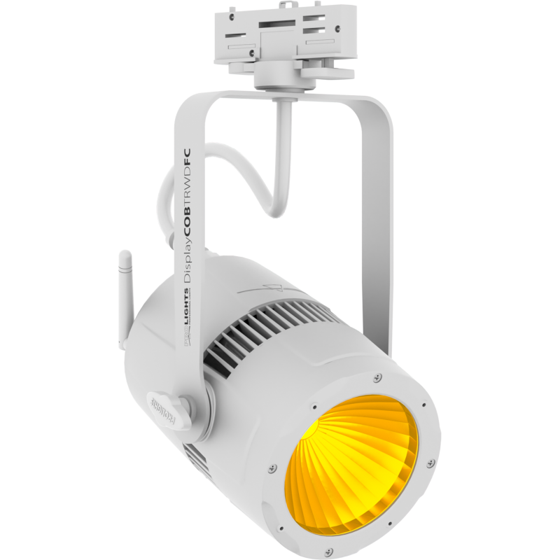DisplayCob TRWDFC je 60W RGB / FC COB bodové svetlo s track adapterom, navrhnuté s elektronickým a užívateľským rozhraním na palube, ktoré je možné ľahko implementovať do akejkoľvek existujúcej svetelných track lišt. Integrovaný bezdrôtový prijímač DMX umožňuje používateľom ovládať toto svietidlo bez kábla, takže nepotrebuje konkrétnu stopu s dátovými vodičmi alebo ju možno zavesiť bez adaptéra stopy, kdekoľvek pomocou integrovaného držiaka a ovládania pomocou káblového protokolu DMX. . Optické systémy DisplayCob TRWDFC sú zložené z výkonného 60 W COB LED zdroja a parabolického reflektora so zameniteľnými šošovkami umožňujúcimi uhol lúča od 15 ° do 60 ° pre dokonalé zaostrenie. Funkcie DisplayCob TRWDFC sú ideálnym riešením na zvýšenie dynamiky a kreativity v akýchkoľvek inštaláciách, ako sú reklamy, hotely, reštaurácie a umelecké galérie.