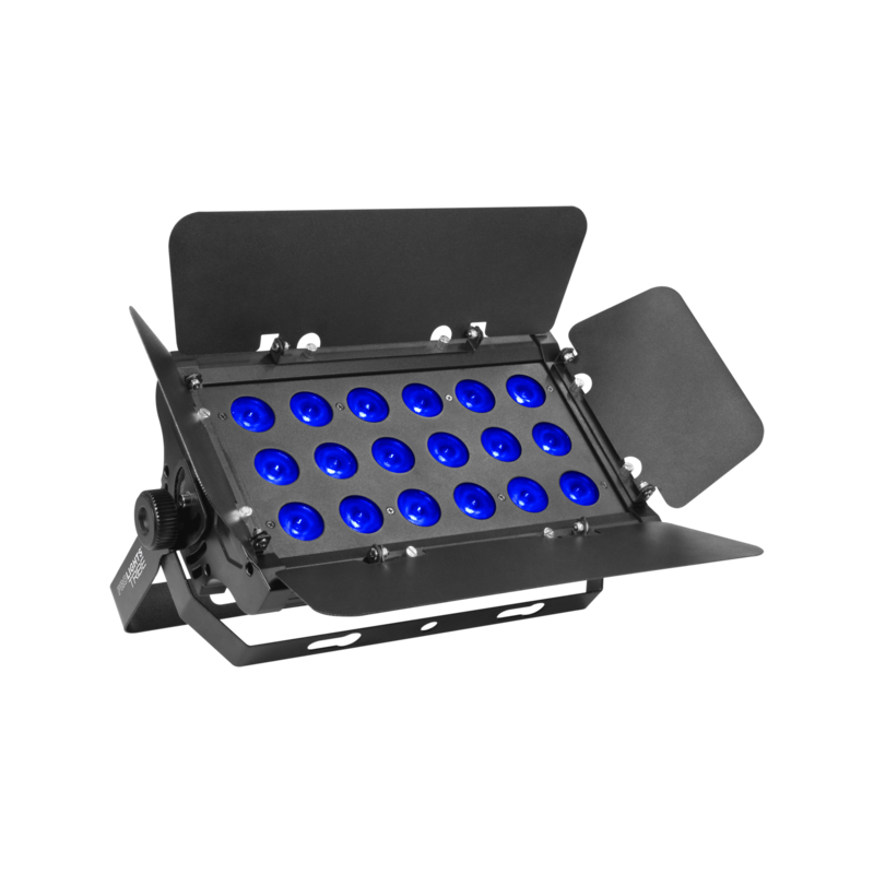 UVPANEL18 je vysokovýkonná UV LED lišta vybavená 18 LED diódami s výkonom 3 W každá, ktorá je určená na nahradenie tradičných svietidiel založených na UV lampách. UVPANEL18 je flexibilný a používateľsky prívetivý projektor, ktorý je možné ovládať v DMX alebo prostredníctvom automatického režimu a režimu master/slave.