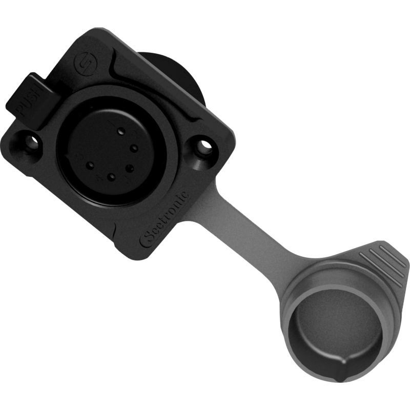 XLR 5 pin female connector, black metal body with gold-plated contacts, IP65