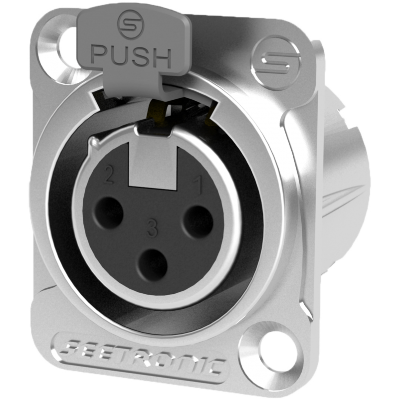 XLR 3-pin female panel connector, metal body with silver contacts