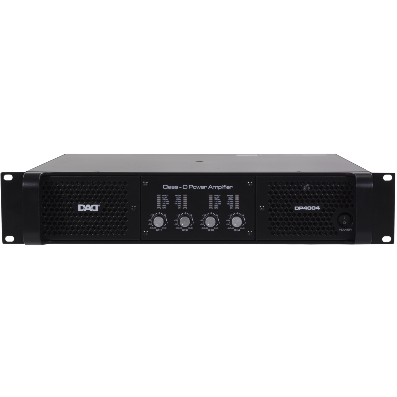 With a single channel power of 650/1100 W 8/4 Ohm, new DP4004 Class D is the best solution for sound applications that require a multi-channel amplifier of average power with a great sound at affordable price.